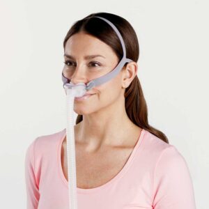 TheAirFit™ P10 is a minimalist nasal pillows maskthat’s incredibly small,lightweight and easy to use. Designed to provide stability while you move around or switch sleep positions, theAirFit P10 also offersQuickFit™ headgear with a side-clip for easy adjustability andQuietAir™ diffused venting technology to help ensure quiet sleep